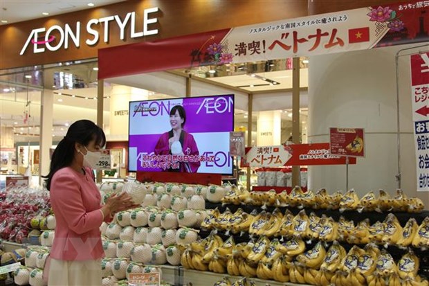 Ảnh: Một khách hàng người Nhật Bản chọn mua dừa Việt Nam ở siêu thị AEON. Ảnh: TTXVN |