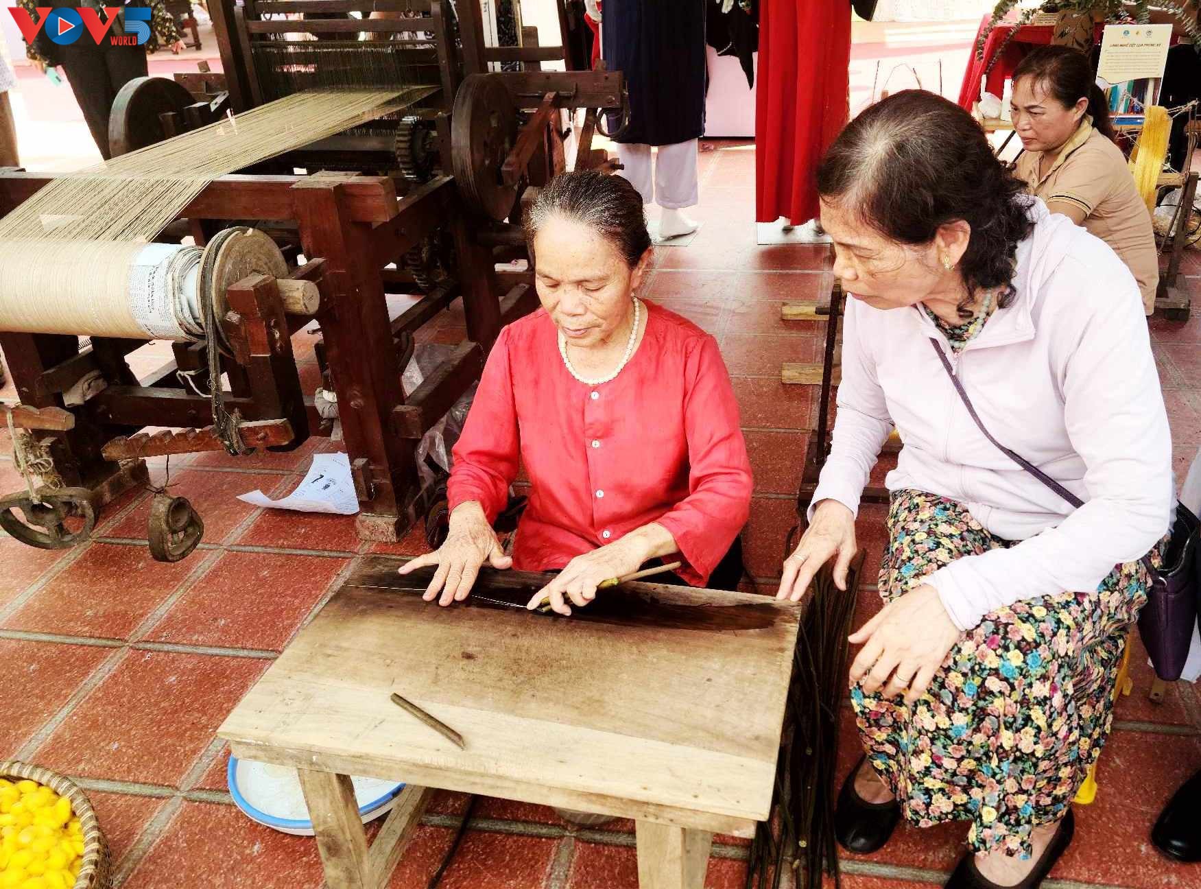Lần đầu tiên tham gia Festival Bảo tồn và Phát triển làng nghề Việt Nam 2023, nghệ nhân ưu tú Phan Thị Thuận, làng tơ tằm Phùng Xá, Mỹ Đức, Hà Nội, tham gia trình diễn rút sợi tơ sen và dệt lụa tơ sen bằng những thao tác khéo léo, tỉ mỉ. Nghệ nhân Phan Thị Thuận chia sẻ: "Rất nhiều người đến tham quan và mua hàng. Đấy là động lực cho những người làm nghề, những nghệ nhân như chúng tôi tiếp tục thổi hồn vào những sản phẩm truyền thống. Chúng tôi rất vui khi được giới thiệu, quảng bá nghề của quê hương mình tới mọi người. Mỗi làng nghề có 1 sản phảm khác nhau, khi được tới đây giao lưu, chính là cơ hội cho chúng tôi thi đua, sáng tạo, học hỏi lẫn nhau để làm ra những sản phẩm tốt hơn, mang đậm giá trị văn hóa của nghề, văn hóa của làng và đặc biệt là giới thiệu những sản phẩm hoàn toàn từ thiên nhiên như lụa tơ sen."