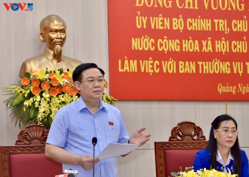 Phát biểu tại buổi làm việc, Chủ tịch Quốc hội Vương Đình Huệ đề nghị tỉnh Quảng Ngải phải nuôi dưỡng khát vọng phát triển, vươn lên thành tỉnh khá, để Quảng Ngãi trở thành một trong những trung tâm phát triển của miền Trung.