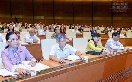 | Các đại biểu ấn nút thông qua Nghị quyết của Quốc hội |