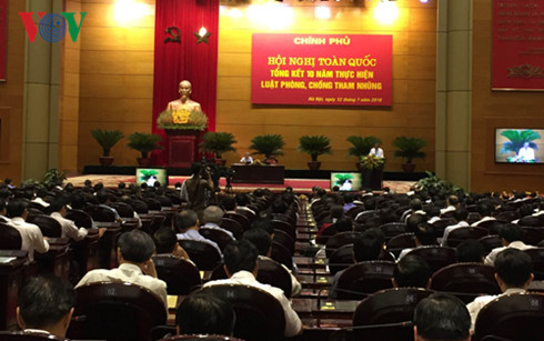 Nhiều vụ án tham nhũng nghiêm trọng, phức tạp được phát hiện, điều tra, xử lý với những bản án nghiêm minh đã có tác dụng răn đe, ngăn chặn hành vi tham nhũng. Các tham luận tại Hội nghị cho rằng để công tác phòng, chống tham nhũng thời gian tới đạt hiệu quả, ngăn chặn và đẩy lùi được tham nhũng thì đòi hỏi phải có quyết tâm chính trị cao và sự vào cuộc quyết liệt của cả hệ thống chính trị. Phát biểu tại đây, Phó Thủ tướng Trương Hòa Bình nêu rõ: "Công cuộc xây dựng và bảo vệ tổ quốc đang đối mặt với nhiều khó khăn thách thức, trong đó có tham nhũng. Tham nhũng đã gây ra những hậu quả xấu về nhiều mặt làm sói mòn lòng tin của nhân dân vào Đảng và chế độ tạo ra những tiềm ẩn xung đột lợi ích, phản ứng xã hội, gia tăng mạnh khoảng cách giàu nghèo. Hội nghị tổng kết 10 năm thực hiện Luật phòng, chống tham nhũng sẽ đưa ra những đề xuất quan trọng để Chính phủ trình Quốc hội sửa đổi toàn diện luật phòng, chống tham nhũng hiệu quả và thực chất, cũng là cơ sở quan trọng để Đảng, nhà nước đưa ra quyết sách về phòng, chống tham nhũng trong thời gian tới".