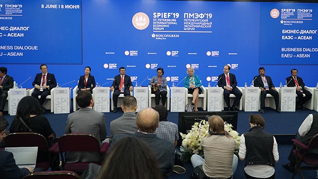 Trong khuôn khổ Diễn đàn kinh tế quốc tế Saint Peterburg – 2019, ngày 8/6, tại Moscow diễn ra phiên đối thoại kinh doanh Liên minh kinh tế Á-Âu (EAEU) – ASEAN với sự tham dự của đại diện Bộ ngành các nước thuộc hai khối. Đại diện đoàn Việt Nam, ông Hoàng Quốc Vượng, Thứ trưởng Bộ Công thương tham dự và có bài phát biểu tại phiên thảo luận.