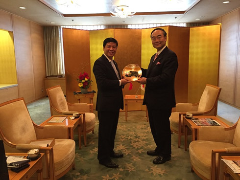 | Đại sứ Nguyễn Quốc Cường và Thống đốc Iizumi Kamon (tỉnh Tokushima) |