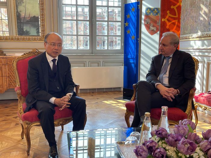 Trong khuôn khổ chuyến thăm và làm việc tại thành phố Toulouse từ 2 đến 4/4, Đại sứ Việt Nam tại Pháp Đinh Toàn Thắng có buổi làm việc với ông Jean-Luc Moudenc, Thị trưởng Toulouse.