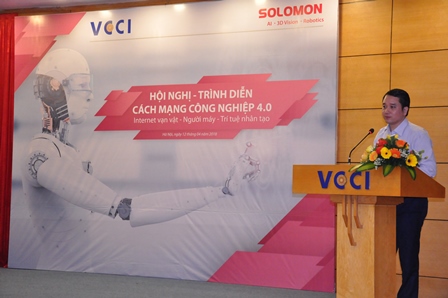 Hội nghị và Trình diễn cách mạng công nghiệp 4.0: Internet vạn vật – Người máy – Trí tuệ nhân tạo" do Phòng Thương mại và Công nghiệp Việt Nam (VCCI) phối hợp với Tập đoàn công nghệ SOLOMON tổ chức sáng 12/04, tại Hà Nội.