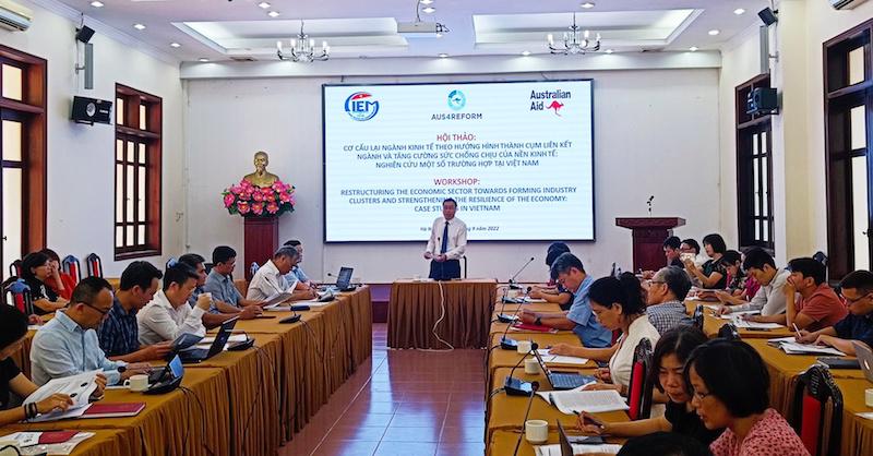 Hội thảo “Cơ cấu lại ngành kinh tế theo hướng hình thành các cụm liên kết ngành và tăng cường sức chống chịu của nền kinh tế trong bối cảnh hội nhập” do Viện Nghiên cứu quản lý kinh tế Trung ương tổ chức sáng 6/9, tại Hà Nội.