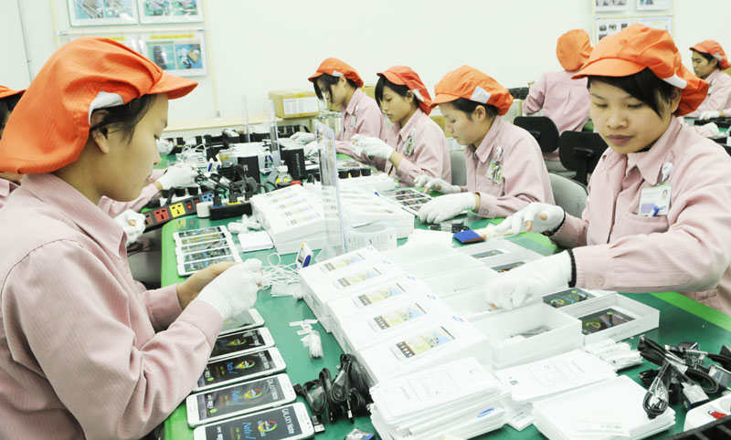 | Kiểm tra sản phẩm trước khi xuất xưởng tại Công ty Samsung Việt Nam. Ảnh minh họa: kinhtedothi |