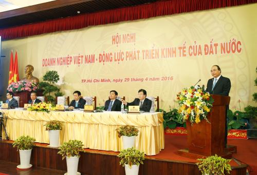 | Thủ tướng Nguyễn Xuân Phúc chủ trì Hội nghị Doanh nghiệp Việt Nam năm 2016 với chủ đề "Doanh nghiệp Việt Nam – Động lực phát triển kinh tế của đất nước". Ảnh: Thống Nhất-TTXVN |