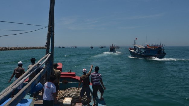 Lễ xuất hành tàu cá ra khơi đánh bắt hải sản tại cửa biển Tam Quan Bắc, Hoài Nhơn, Bình Định - Ảnh: TRƯỜNG ĐĂNG