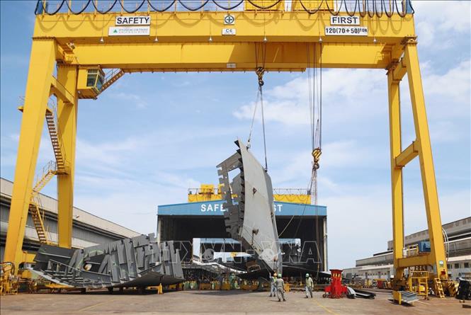 Ảnh minh họa: Đóng mới tàu chở hàng tại Công ty TNHH đóng tàu Hyundai Việt Nam. Ảnh: Tiên Minh/TTXVN |