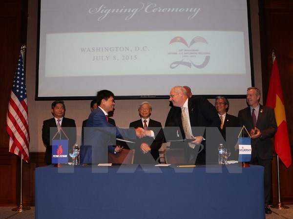 Đại diện Tập đoàn Dầu khí Việt Nam và Tập đoàn Murphy Oil ký Thỏa thuận hợp tác. (Ảnh: Trí Dũng/TTXVN)