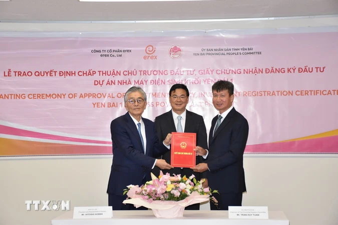 Hôm nay (08/05), tại thủ đô Tokyo (Nhật Bản), Chủ tịch Ủy ban Nhân dân (UBND) tỉnh Yên Bái Trần Huy Tuấn đã trao quyết định chấp thuận chủ trương đầu tư Dự án nhà máy điện sinh khối Yên Bái 1 tại Cụm Công nghiệp Bắc Văn Yên, huyện Văn Yên, tỉnh Yên Bái, cho Tập đoàn Erex.