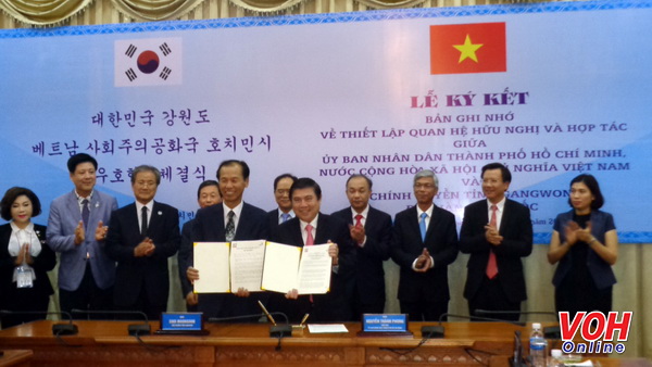 Đây là nội dung được đưa ra tại lễ ký kết bản ghi nhớ về thiết lập quan hệ hữu nghị và hợp tác giữa Ủy ban nhân dân Thành phố Hồ Chí Minh và Chính quyền tỉnh Gangwon (Hàn Quốc), chiều 8/6. Phát biểu tại lễ ký kết, ông Nguyễn Thành Phong, Chủ tịch Ủy ban nhân dân Thành phố Hồ Chí Minh, nhấn mạnh sự kiện Thành phố Hồ Chí Minh và tỉnh Gangwon ký kết bản ghi nhớ về thiết lập quan hệ hữu nghị và hợp tác là một điểm nhấn quan trọng trong mối quan hệ ngoại giao giữa Việt Nam và Hàn Quốc. Sự kiện góp phần tích cực vào việc củng cố, phát triển mối quan hệ Đối tác Hợp tác Chiến lược giữa hai nước cũng như mối quan hệ tốt đẹp giữa Thành phố Hồ Chí Minh với các địa phương khác của Hàn Quốc. Theo ông Nguyễn Thành Phong, Thành phố Hồ Chí Minh đang có nhu cầu đầu tư vào những lĩnh vực mà tỉnh Gangwon có thế mạnh như công nghệ sinh học, y tế, năng lượng, vì vậy việc hợp tác trong thời gian tới sẽ đạt hiệu quả cao cho cả hai bên.