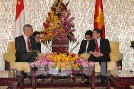 | Chủ tịch UBND thành phố Hồ Chí Minh Nguyễn Thành Phong hội kiến Thủ tướng Singapore Lý Hiển Long. Ảnh: TTXVN |