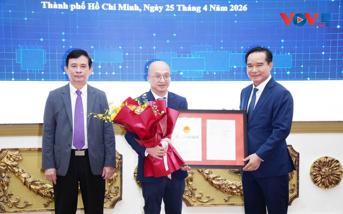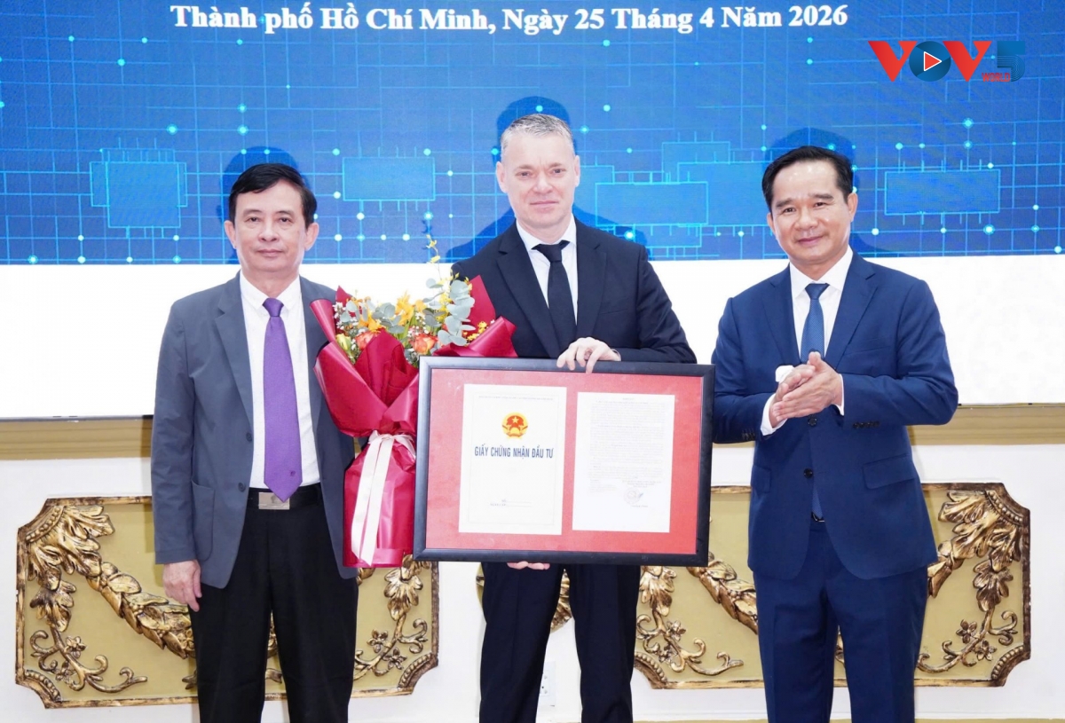 Sáng nay (25/4) tại thành phố Hồ Chí Minh, Ủy ban Nhân dân thành phố Hồ Chí Minh tổ chức lễ trao giấy chứng nhận đăng ký đầu tư cho 4 dự án công nghệ cao trọng điểm quý I/2026 tổng số vốn đầu tư 1,23 tỉ USD.