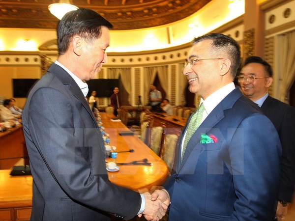 Phó Chủ tịch UBND TP Hồ Chí Minh Trần Vĩnh Tuyến tiếp ông Amit Midha, Chủ tịch Dell Technologies khu vực châu Á-Thái Bình Dương - Ảnh: Thanh Vũ/TTXVN |