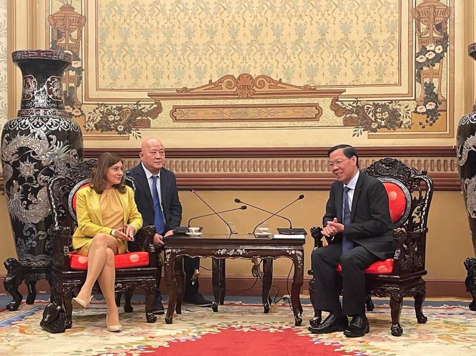 Chủ tịch UBND Thành phố Hồ Chí Minh Phan Văn Mãi (bên phải) đã có buổi tiếp quyền Thị trưởng Thành phố Frankfurt (Đức) Nargess Eskandari-Grünberg hôm 13/2. Ảnh: Xuân Mai/nld.com.vn |