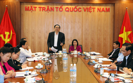 | Cuộc họp góp ý hiệp thương phối hợp thống nhất thực hiện cuộc vận động “Toàn dân đoàn kết xây dựng nông thôn mới, đô thị văn minh”. Ảnh: laodongthudo |