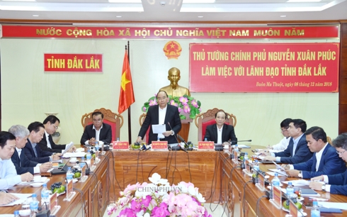 Trong chuyến công tác tại Tây Nguyên dự Hội nghị toàn quốc về giải quyết tình trạng di dân tự do và quản lý đất đai các nông, lâm trường quốc doanh diễn ra vào sáng 9/12, chiều 8/12, tại Thành phố Buôn Ma Thuột, Thủ tướng Nguyễn Xuân Phúc chủ trì làm việc với lãnh đạo chủ chốt tỉnh Đắk Lắk.