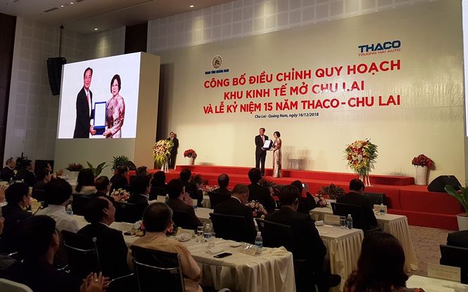 Phát biểu tại Lễ kỷ niệm 15 năm Thaco - Chu Lai, Thủ tướng Nguyễn Xuân Phúc cho biết: Cách đây 15 năm, khu vực công ty đặt nhà máy không có hạ tầng, không nguồn nhân lực, không nhà đầu tư và không có thị trường. Sau 15 năm, Thaco đã mang lại giá trị gia tăng lớn rất từ vùng đất này, xây dựng thương hiệu lớn trong ngành công nghiệp ô tô Việt Nam. Thaco đã kết hợp giữa sản xuất, lắp ráp với đào tạo nguồn nhân lực qua việc kết hợp nhà trường và nhà máy. Đặc biệt, Công ty đã lấy khoa học công nghệ làm trọng điểm của động lực phát triển. Thủ tướng khẳng định: Khu kinh tế mở Chu Lai đã trở thành khu kinh tế có thương hiệu, có sân bay Chu Lai, có cảng biển quốc tế, đường cao tốc... thu hút được các nhà đầu tư nước ngoài. Thủ tướng nhấn mạnh Thaco-Chu Lai là một điển hỉnh của sự hợp tác giữa doanh nghiệp trong nước và nước ngoài, vấn đề mà chúng ta đang thúc đẩy.