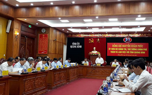 Chiều 25/8, tại Quảng Bình, Thủ tướng Chính phủ Nguyễn Xuân Phúc làm việc với lãnh đạo chủ chốt của tỉnh Quảng Bình về tình hình triển khai nhiệm vụ kinh tế xã hội. Kết luận buổi làm việc, Thủ tướng đánh giá từ đầu năm đến nay, kinh tế của tỉnh tăng tốt, trong đó nông nghiệp, công nghiệp đều tăng, đặt biệt là du lịch tăng trưởng cao; khai thác và chế biến thủy sản phục hồi; đời sống của người dân được nâng lên, công tác bảo vệ rừng tự nhiên được triển khai tốt…