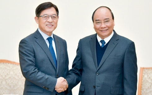 Sáng 11/1, tại trụ sở Chính phủ, Thủ tướng Chính phủ Nguyễn Xuân Phúc tiếp ông Shim Won Hwan, Phó Tổng Giám đốc Điều hành tập đoàn, Tổng giám đốc Công ty Dịch vụ điện tử của tập đoàn Samsung, Hàn Quốc.