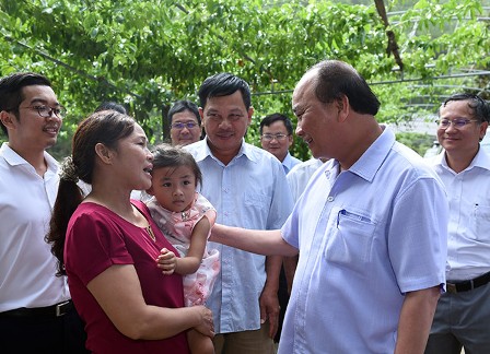 | Phát biểu với người dân xã Nam Giang, Thủ tướng lưu ý trong quá trình phát triển, từng hộ dân trong xã cần làm gương trong việc bảo vệ môi trường sống. Ảnh: vov |