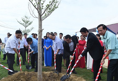 | Thủ tướng Nguyễn Xuân Phúc đã thăm và khảo sát tiến độ triển khai Dự án Khu công nghiệp VSIP Nghệ An. Đây là khu công nghiệp thứ 7 của VSIP tại Việt Nam, khởi công từ tháng 9 năm ngoái. Thủ tướng đã trồng cây lưu niệm tại đây. Ảnh: vov |