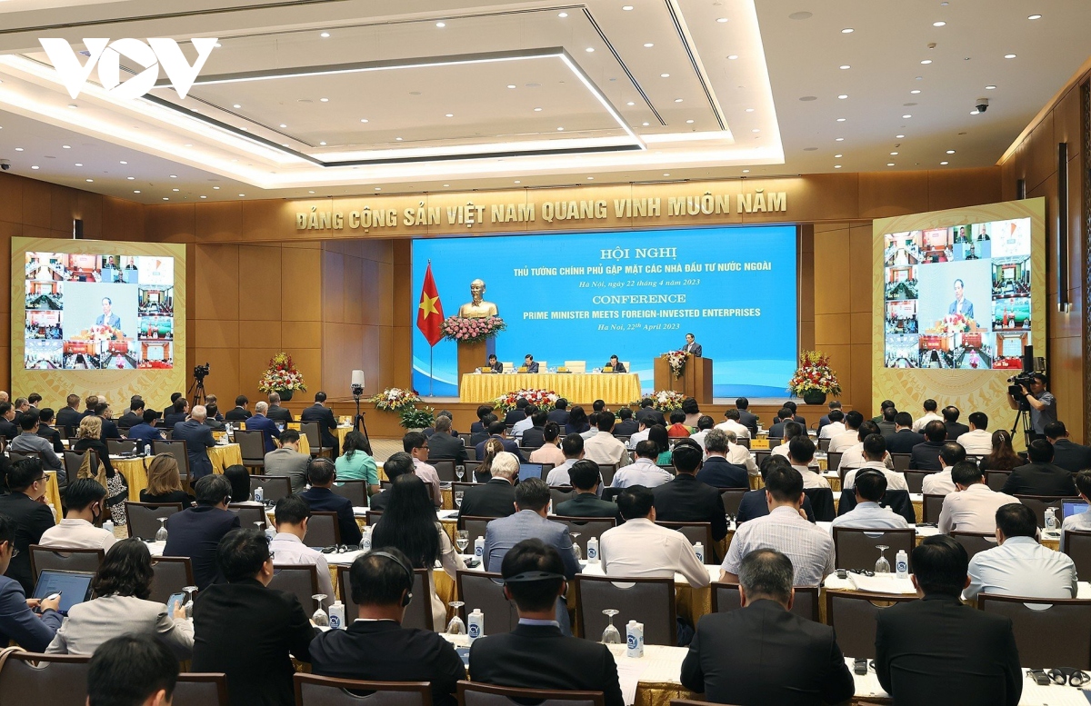 Hội nghị Thủ tướng Chính phủ gặp mặt các nhà đầu tư nước ngoài. Ảnh: VOV |