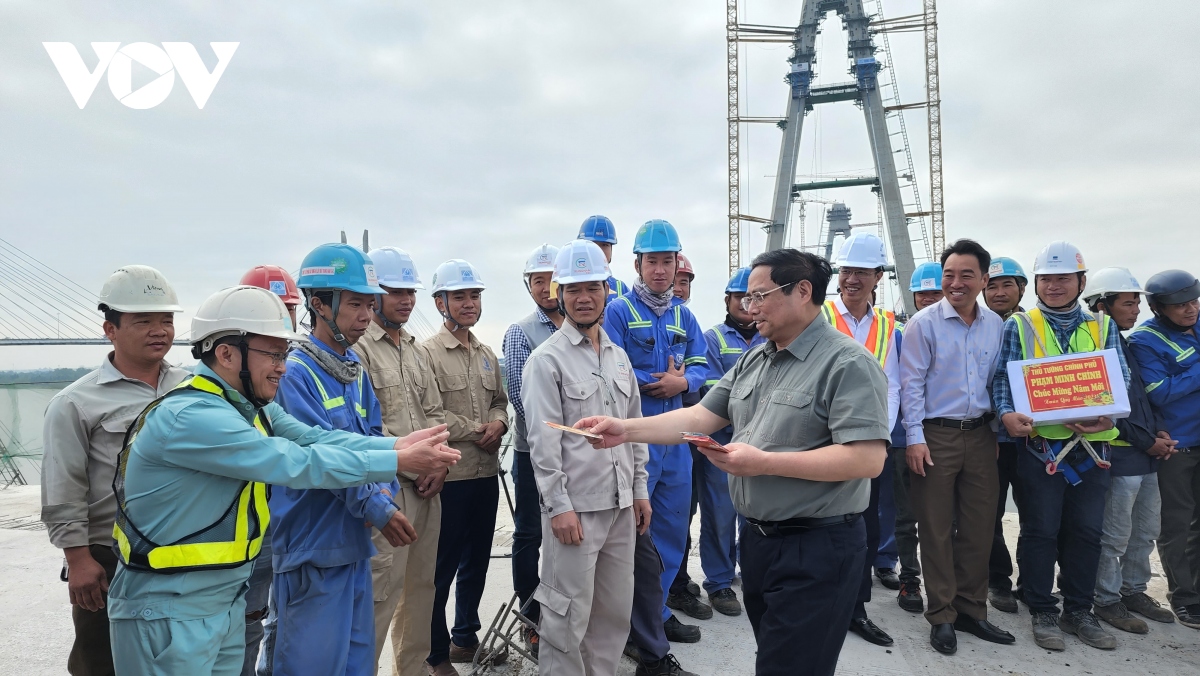 Sáng nay (30/1), Thủ tướng Chính phủ Phạm Minh Chính cùng đoàn công tác của Chính phủ kiểm tra thực địa Dự án cao tốc khu vực Đồng bằng Sông Cửu Long, thăm động viên chúc tết người lao động trên công trường thi công.