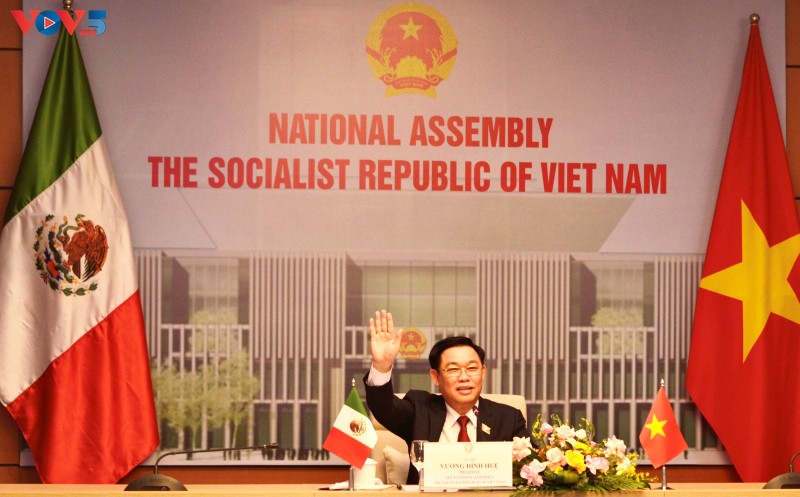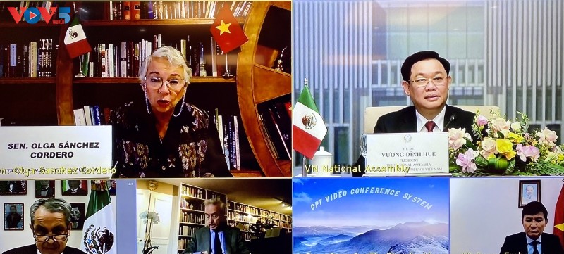 Chủ tịch Quốc hội Vương Đình Huệ đã hội đàm trực tuyến với Chủ tịch Thượng viện nước Cộng hòa Mexico Olga Sanchez Cordero. Ảnh: Lê Tuyết/ VOV |
