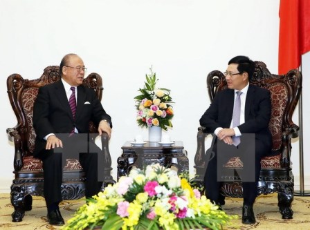 | Phó Thủ tướng Phạm Bình Minh tiếp ông Tsutomu Takebe, Cố vấn đặc biệt Liên minh Nghị sỹ Hữu nghị Nhật-Việt đang ở thăm và làm việc tại Việt Nam. (Ảnh: Nguyễn Dân/TTXVN) |