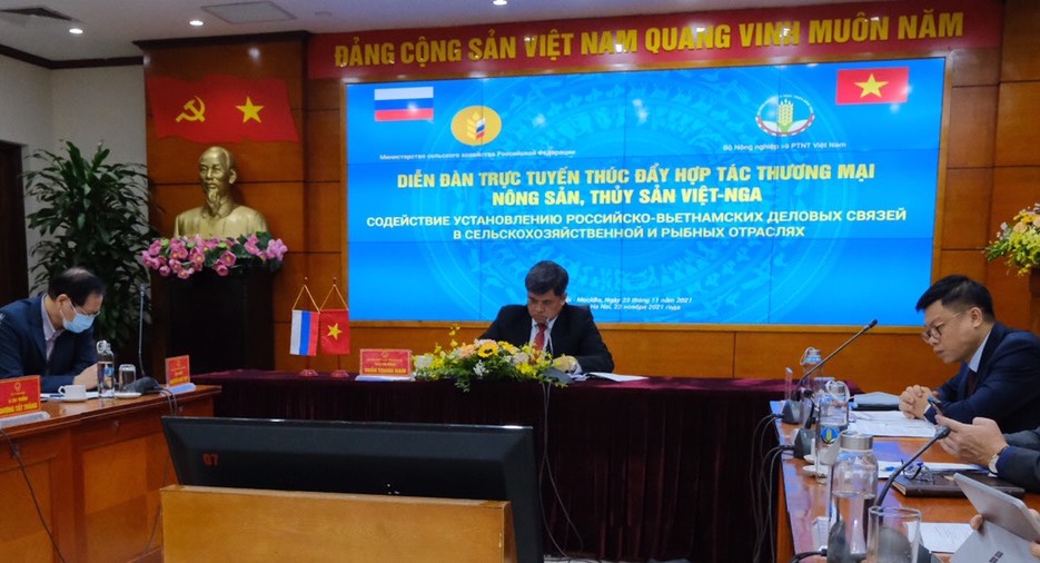 Chiều 23/11, Bộ Nông nghiệp và Phát triển nông thôn Việt Nam phối hợp với Bộ Nông nghiệp Liên bang Nga, Đại sứ quán Nga tại Việt Nam, Đại sứ quán Việt Nam tại Liên bang Nga tổ chức “Diễn đàn trực tuyến thúc đẩy hợp tác thương mại nông sản, thủy sản Việt Nam - Liên bang Nga”.