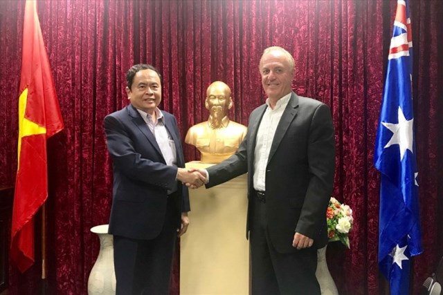 Ngày 8/12, Chủ tịch Ủy ban Trung ương Mặt trận Tổ quốc (MTTQ) Việt Nam Trần Thanh Mẫn tiếp ông Norman Grant, Chủ tịch Hiệp hội nhập khẩu thuỷ sản Australia, tại thành phố Sydney, trong khuôn khổ chuyến thăm làm việc tại Australia từ ngày 6-10/12.
