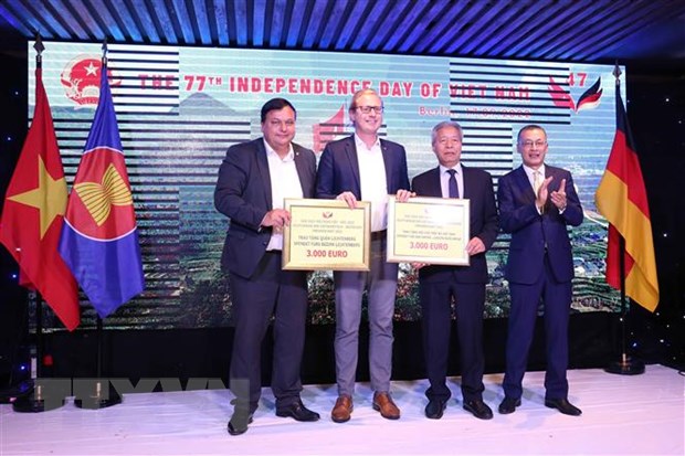 Nhân kỷ niệm 77 năm Quốc khánh nước CHXHCN Việt Nam, 47 năm ngày thiết lập quan hệ ngoại giao giữa Việt Nam và CHLB Đức (23/9) và 32 năm ngày Thống nhất nước Đức (3/10), tối 17/9, Đại sứ quán Việt Nam tại Đức đã tổ chức Tiệc chiêu đãi với sự tham dự của đại diện Chính phủ Đức, đại diện Ngoại giao đoàn tại Berlin, Hiệp hội Doanh nghiệp vừa và nhỏ của Đức, Hội Đức - Việt, đông đảo bạn bè Đức và quốc tế cùng cộng đồng người Việt ở Đức.