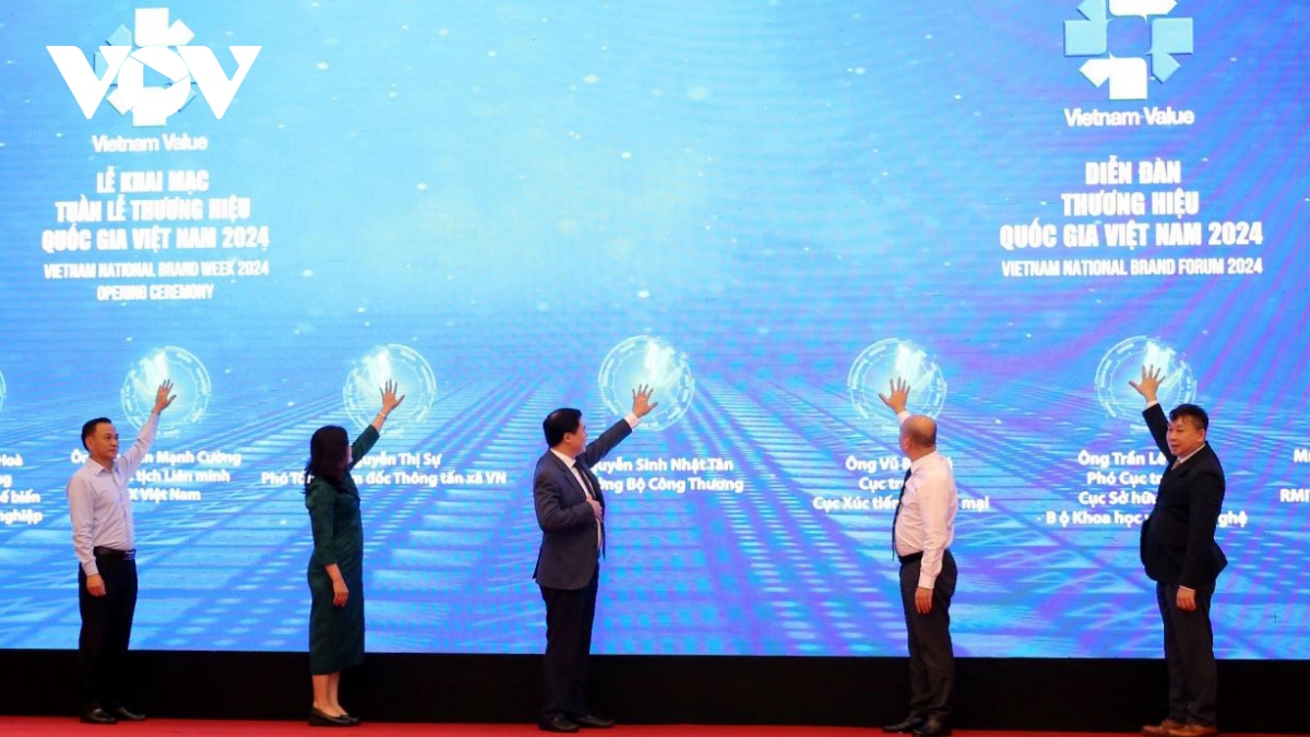 Các đại biểu tham gia nghi thức Khai mạc Tuần lễ Thương hiệu quốc gia Việt Nam năm 2024. Ảnh: VOV |