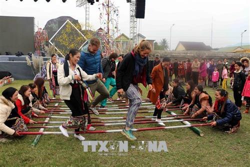 Du khách trải nghiệm văn hóa của người Thái tại Khu Du lịch cộng đồng thuộc xã Châu Tiến, Huyện Quỳ Châu, Nghệ An - Ảnh: Bích Huệ/TTXVN |