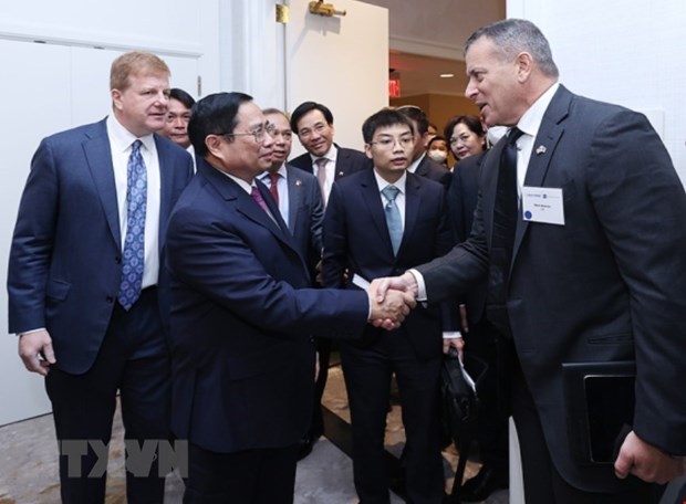 Thủ tướng Phạm Minh Chính với các nhà đầu tư và doanh nghiệp Hoa Kỳ. Ảnh: Dương Giang/TTXVN |