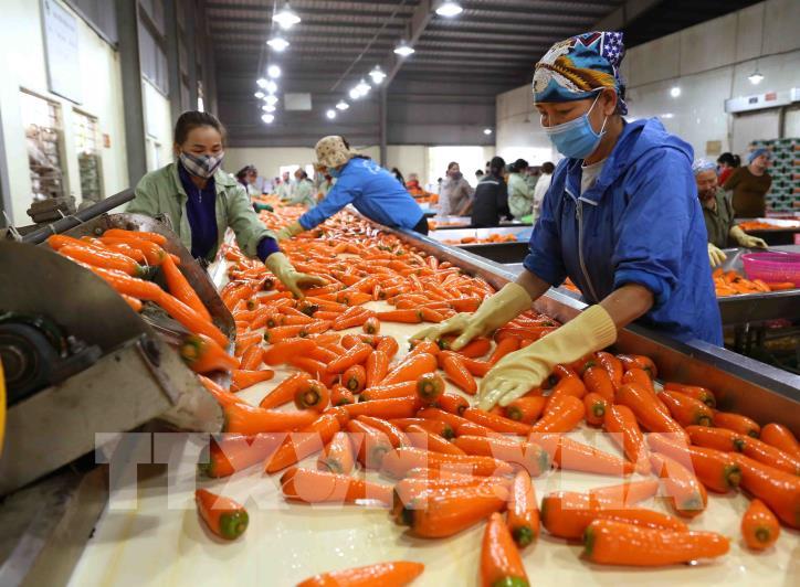 Phân loại sản phẩm cà rốt xuất khẩu. Ảnh: Vũ Sinh - TTXVN |