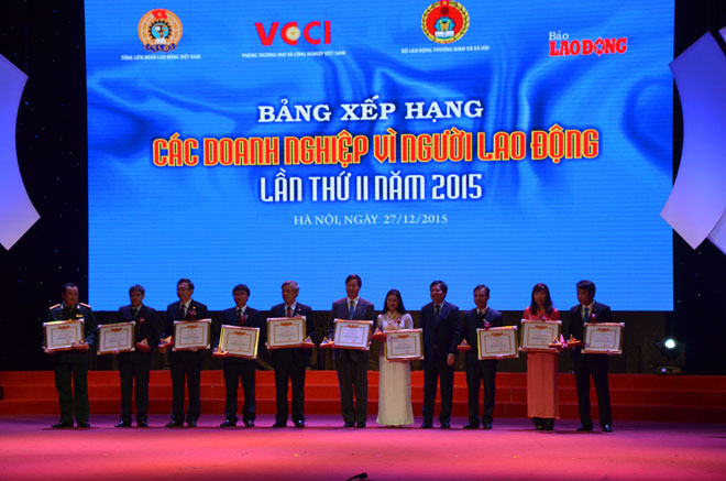 (VOV5) - 49 doanh nghiệp được tuyên dương trong chương trình "Tôn vinh các doanh nghiệp vì người lao động” do Tổng Liên đoàn Lao động Việt Nam phối hợp với Bộ Lao động Thương binh và xã hội, Phòng Thương mại và Công nghiệp Việt Nam, Báo Lao Động tổ chức sáng 27/12.