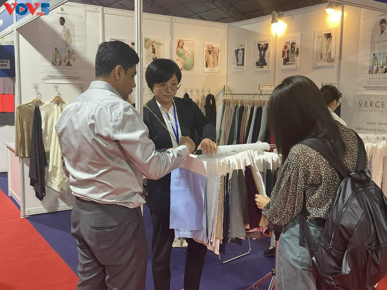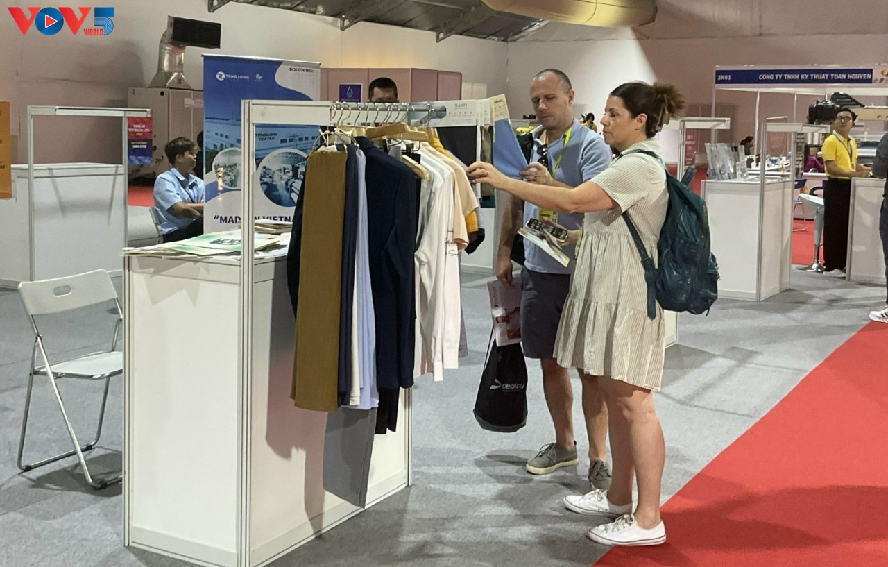 Nhiều khách nước ngoài quan tâm đến sản phẩm dệt may của Việt Nam - Ảnh Lệ Hằng |