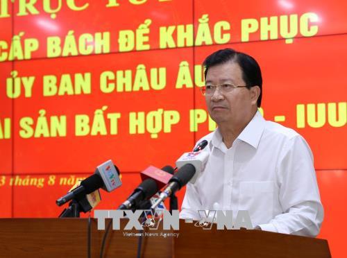 Phó Thủ tướng cho rằng việc nhanh chóng có các biện pháp để EC gỡ bỏ cảnh báo “thẻ vàng” là nhiệm vụ đặc biệt quan trọng và cấp thiết mà Chính phủ và các bộ, ban, ngành, địa phương phải tập trung triển khai trong thời gian tới.