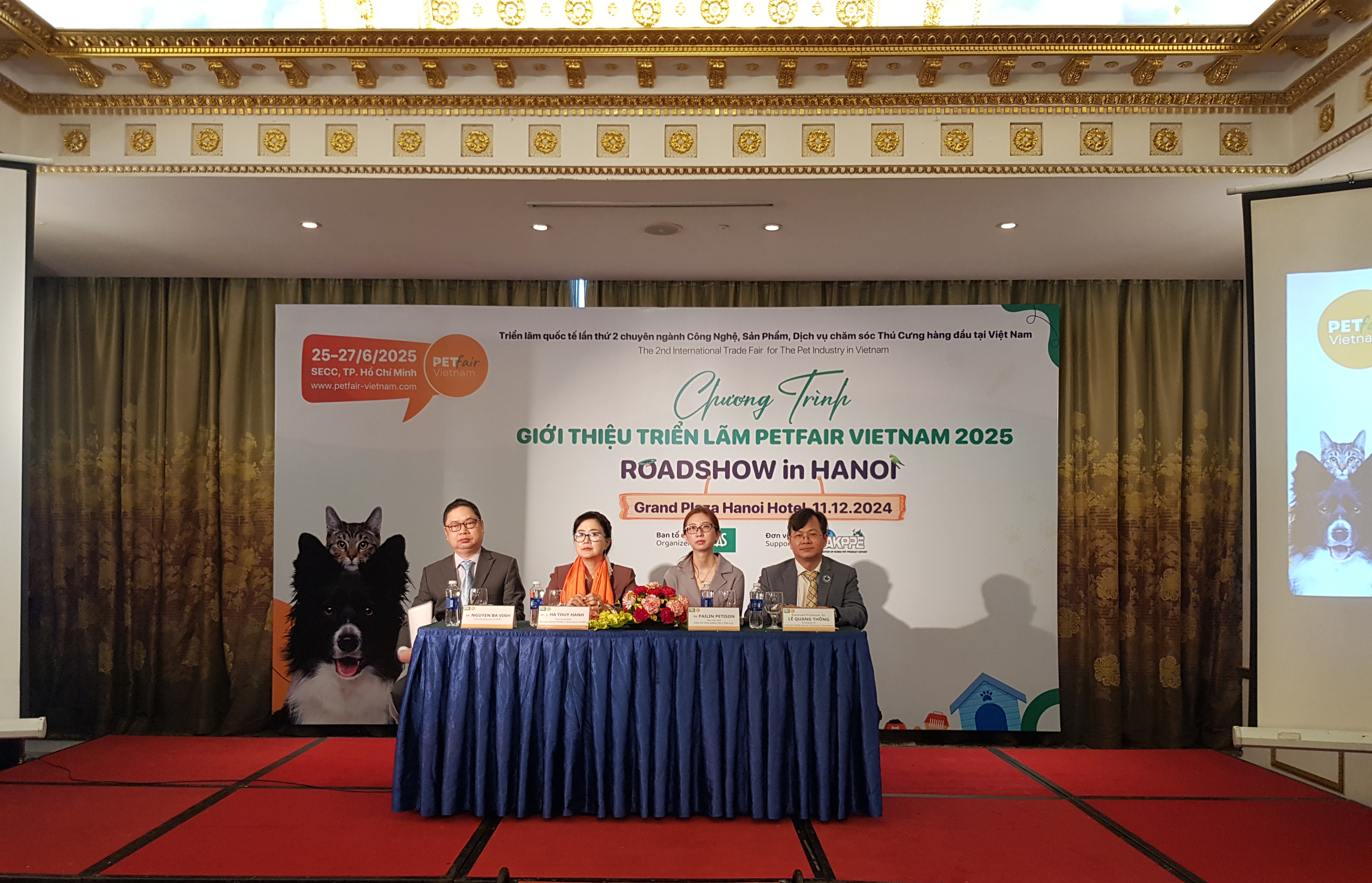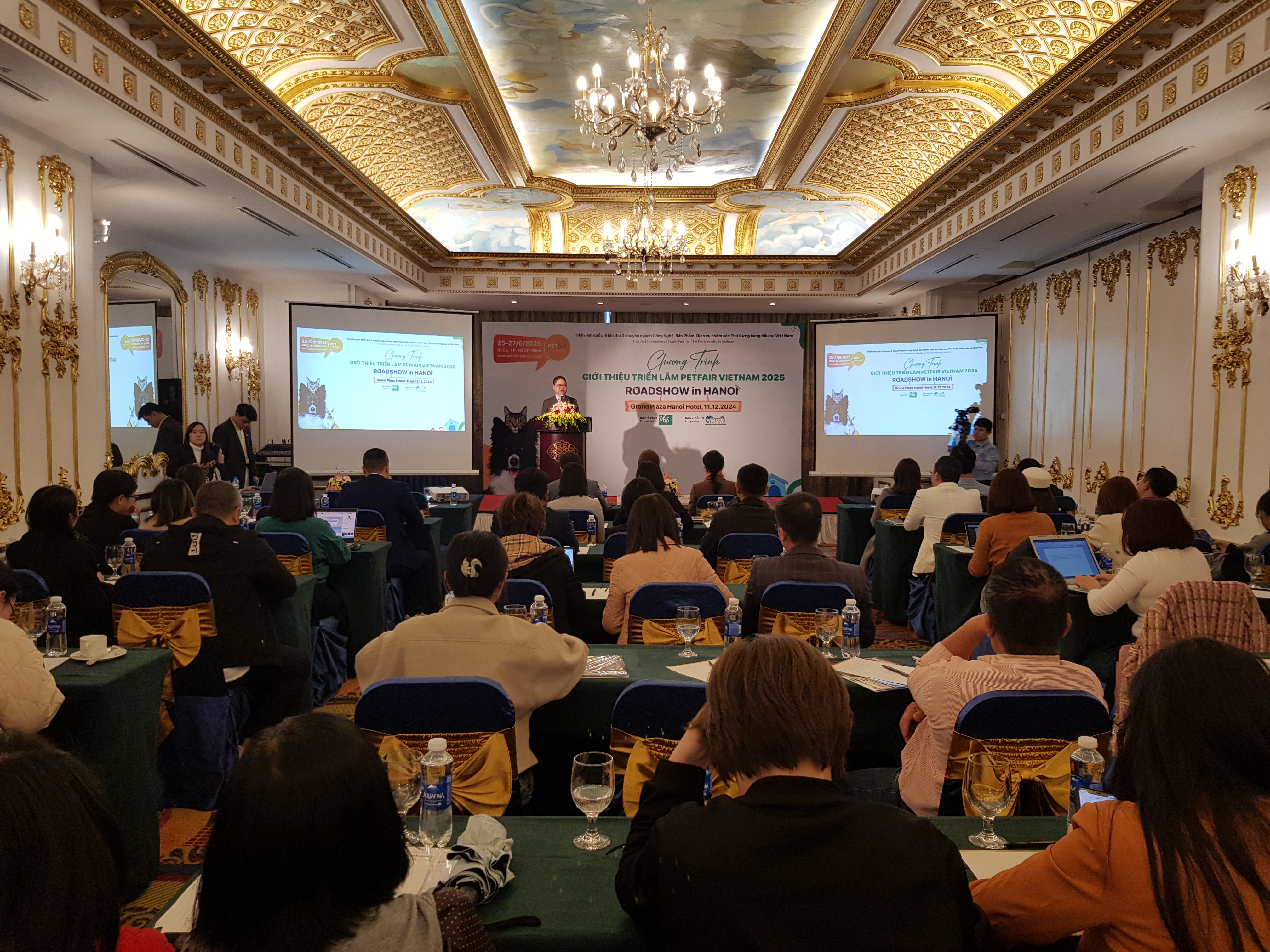 Sáng 11/12, tại Hà Nội, diễn ra họp báo và chương trình Roadshow giới thiệu Triển lãm quốc tế lần thứ 2 chuyên ngành công nghệ, sản phẩm, dịch vụ chăm sóc thú cưng hàng đầu tại Việt Nam năm 2025 (Petfair Vietnam 2025). Sự kiện được tổ chức bởi Hội Bảo vệ động vật Việt Nam, Chi hội Thú y - Thú nhỏ Việt Nam, Công ty Trách nhiệm hữu hạn Dịch vụ Quảng cáo và Triển lãm Minh Vi (VEAS) với sự hỗ trợ từ Hiệp hội xuất khẩu sản phẩm thú cưng Hàn Quốc (AKPPE).