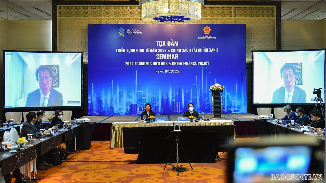 Chiều 18/2, Bộ Ngoại giao và Ngân hàng Standard Chartered phối hợp tổ chức tọa đàm “Triển vọng kinh tế năm 2022 và chính sách tài chính xanh”.