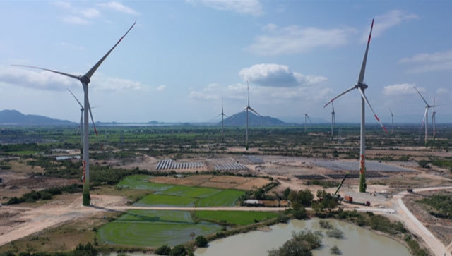 Tổ hợp năng lượng tái tạo điện mặt trời và điện gió Trung Nam, ở huyện Thuận Bắc, Ninh Thuận - Ảnh: nhandan.com.vn |