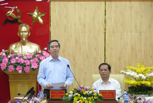 Ngày 21/1, Đoàn công tác do ông Nguyễn Văn Bình, Ủy viên Bộ Chính trị, Bí thư Trung ương Đảng, Trưởng ban Kinh tế Trung ương làm việc với Ban Thường vụ Tỉnh ủy Quảng Ngãi về tình hình thực hiện nhiệm vụ phát triển kinh tế-xã hội, công tác xây dựng Đảng năm 2018 và mục tiêu, giải pháp năm 2019.