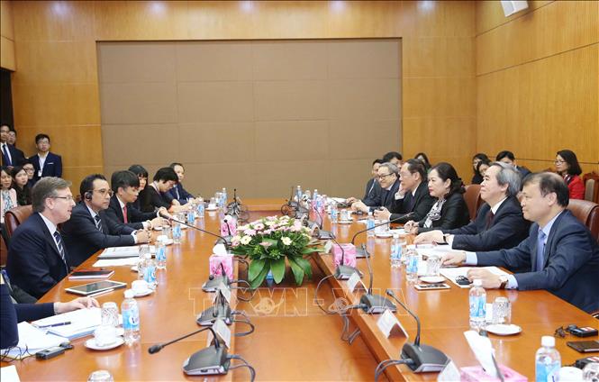 Tại buổi làm việc giữa Trưởng ban Kinh tế Trung ương Nguyễn Văn Bình và Đoàn Hội đồng Kinh doanh Hoa Kỳ - ASEAN (US-ABC), ngày 05/03, tại Hà Nội, hai bên trao đổi những vấn đề về thể chế, chính sách phát triển kinh tế- xã hội của Việt Nam, cơ chế chính sách, những kiến nghị trong các lĩnh vực mà các doanh nghiệp Hoa Kỳ quan tâm như: năng lượng, cơ sở hạ tầng, nông nghiệp, kinh tế số, khoa học công nghệ…