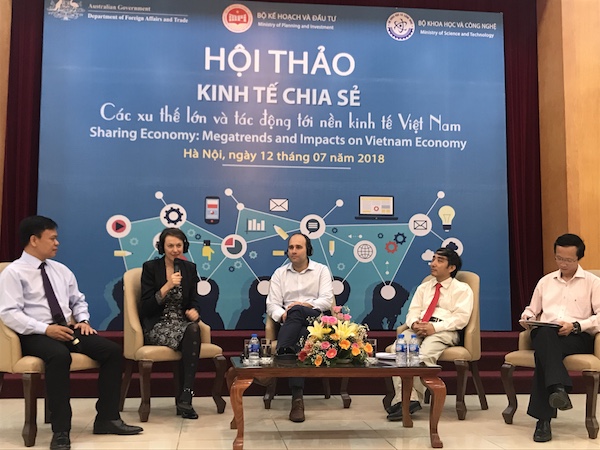 Sáng 12/7, tại Hà Nội, Bộ Kế hoạch và đầu tư phối hợp với Bộ Khoa học công nghệ và Đại sứ quán Australia tại Việt Nam tổ chức hội thảo “Kinh tế chia sẻ: các xu thế lớn và tác động tới nền kinh tế Việt Nam”.