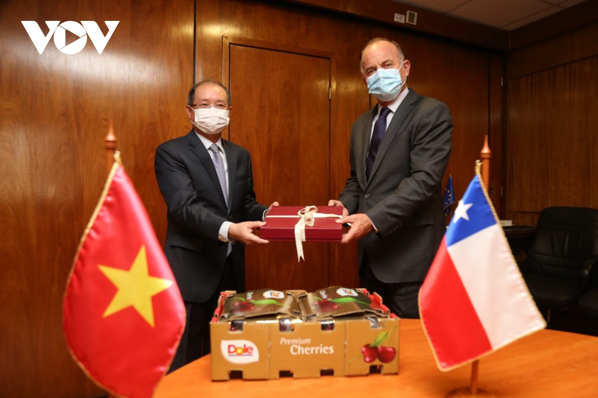Bộ trưởng Nông nghiệp Chile Antonio Walker ngày 27/10 tiếp Đại sứ Việt Nam tại Chile Nguyễn Ngọc Sơn, để trao đổi về các biện pháp tăng cường quan hệ giữa hai nước trong lĩnh vực nông nghiệp.