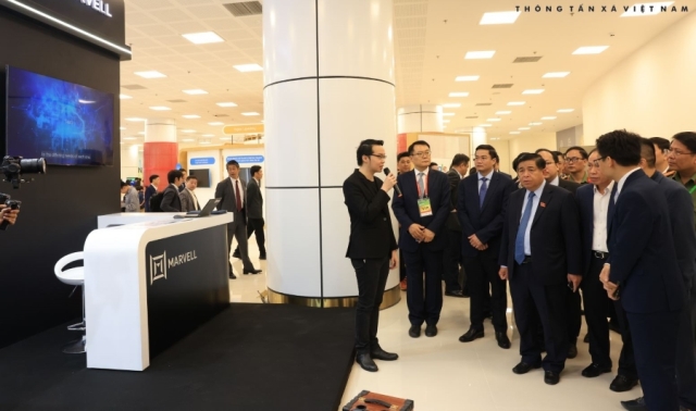 Các đại biểu tham quan gian trưng bày tại Triển lãm ngành công nghiệp bán dẫn Việt Nam 2024. Ảnh: Thế Đoàn/Báo Tin tức |